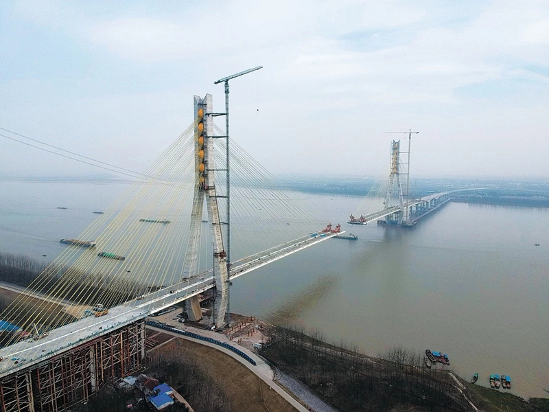 池州長江公路大橋是安徽省“四縱四橫”高速公路網規(guī)劃中“縱三”濟南至祁門高速公路跨越長江的關鍵性工程。長江主通航孔橋即跨江主橋全長1448m,采用登高塔混合梁雙塔斜拉橋方案。