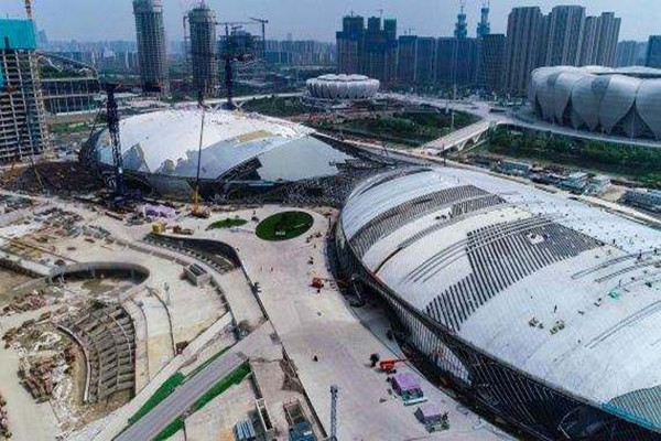 俯瞰杭州奧體中心主體育館、游泳館,呈“化蝶”姿態(tài)欲展翅飛翔,全球最大“玉琮”——綜合訓(xùn)練館也已雄姿初展,錢江南岸的新時(shí)代杭州城市新地標(biāo)群輪廓日益清晰。截至目前,主體育館和游泳館主體結(jié)構(gòu)已通過驗(yàn)收,金屬屋蓋實(shí)現(xiàn)整體閉水,機(jī)電設(shè)備安裝完成90%,室內(nèi)精裝修完成65%,室外市政配套完成55%。綜合訓(xùn)練館主體結(jié)構(gòu)也已通過驗(yàn)收,屋面、幕墻工程完成77%,機(jī)電設(shè)備安裝完成85%,室內(nèi)精裝修完成50%,室外市政配套完成90%。