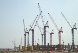 大連國際會議中心由中建八局大連分公司承建,采用中昇建機二臺ZSL750行走式動臂塔機最大吊重15m處吊50t。 2009-10-09 |