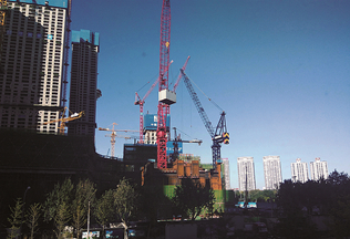施工高度468米,采用中昇建機(jī)ZSL1250(64T),ZSL1150(64T)及ZSL750(50T)各一臺(tái)。
