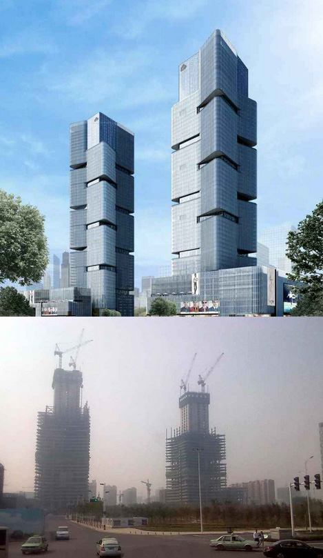 施工高度326.6米,采用中昇建機(jī)一臺ZSL1000(最大吊重64t) 和一臺ZSL380(最大吊重32t)