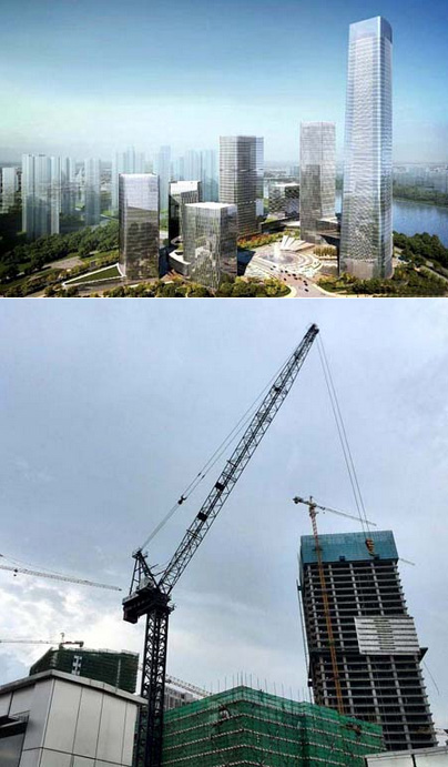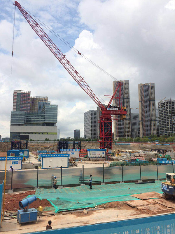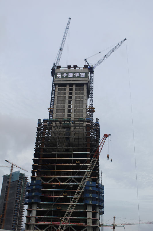 施工高度428米,采用中昇建機(jī)ZSL850(50t)、ZSL750(50t)、和ZSL380(32t)各一臺。