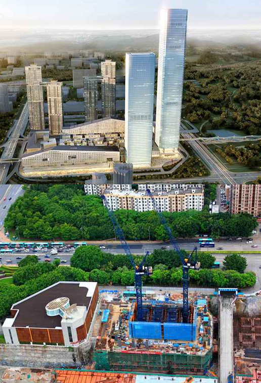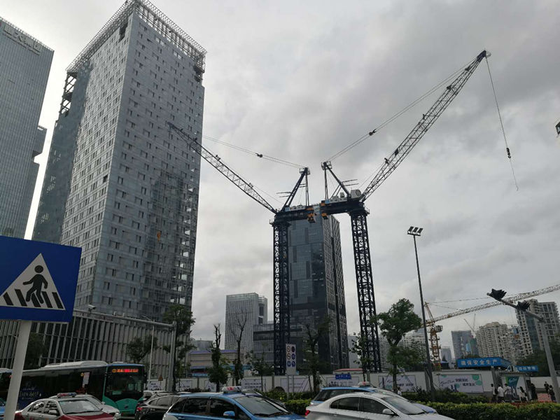 施工高度317.6米,采用中昇建機(jī)兩臺ZSL750(最大吊重50t)
