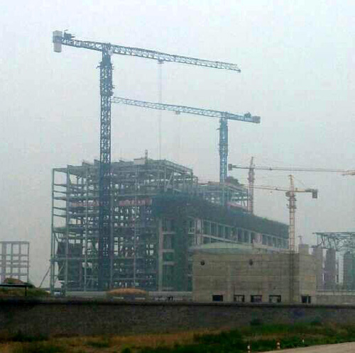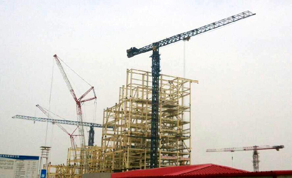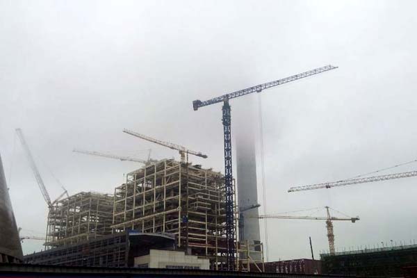 建筑主體高度592.5米,采用中昇建機(jī)ZSL2700(100T)兩臺(tái)。