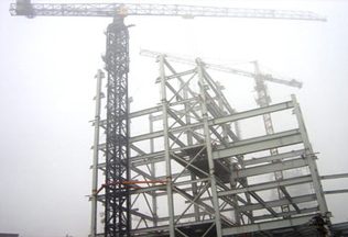 施工高度264.8米,采用中昇建機內(nèi)爬動臂式塔機ZSL1000(64t)兩臺